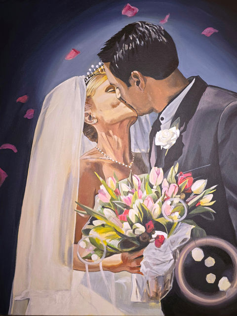 With over 25+ years of painting experience, I am an expert at all things acrylic paint, colour, and composition. I've painted aisle walks, first kisses, first looks, post wedding pictures, first dances, and more! I'll capture the image you're after on the day, and your beautiful painting will unfold before your eyes by me for you and your guests on your wedding day.